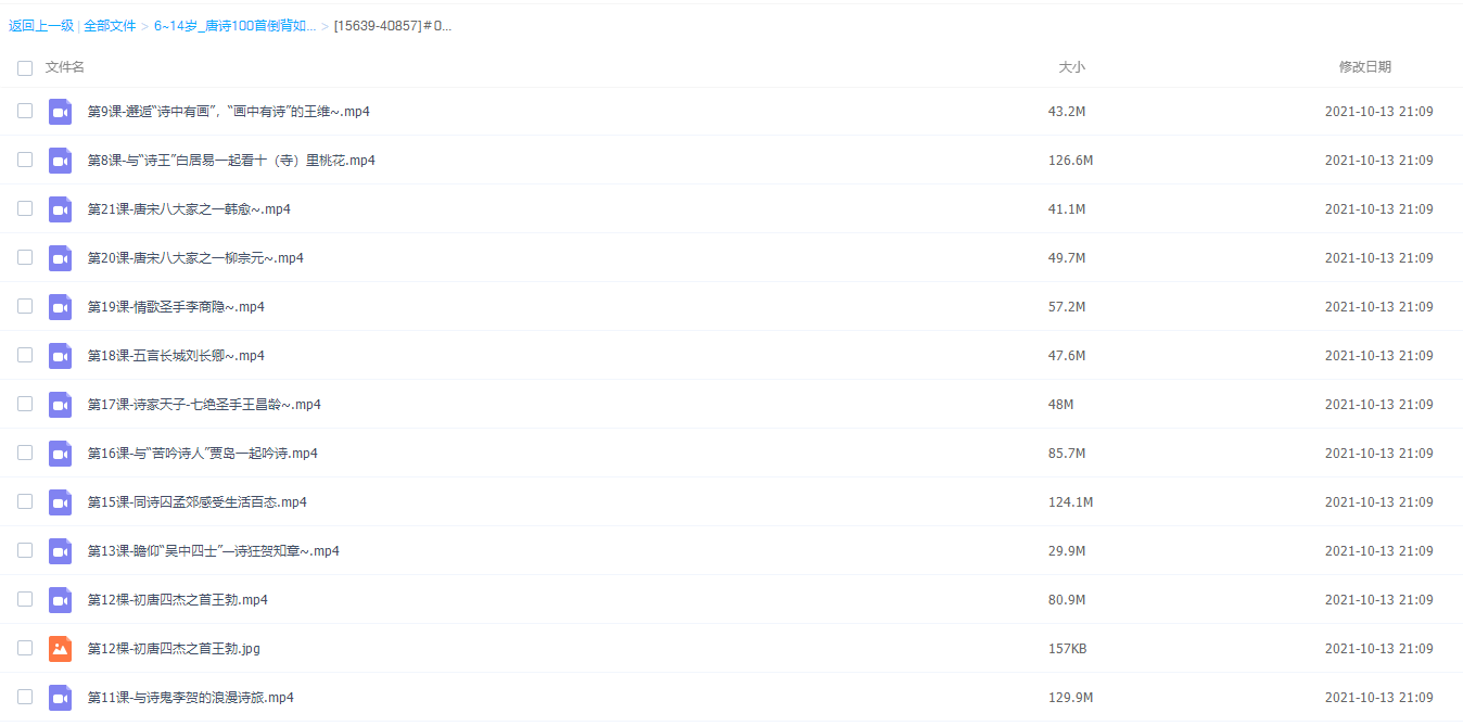 诗词是传承古今的歌唱,通过特殊记忆法掌握背唐诗的万能公式,让孩子把100首唐诗倒背如流,不仅用于背诵唐诗,还可以复制迁移运用到背诵国学经典,十分实用。此课件来自《唐诗100首倒背如流》李庆掌握高效记忆法 ,这21堂视频大课内,通过4个阶段的学习,掌握高效的唐诗速记法,从此,诗词背诵再也不是一件难事!