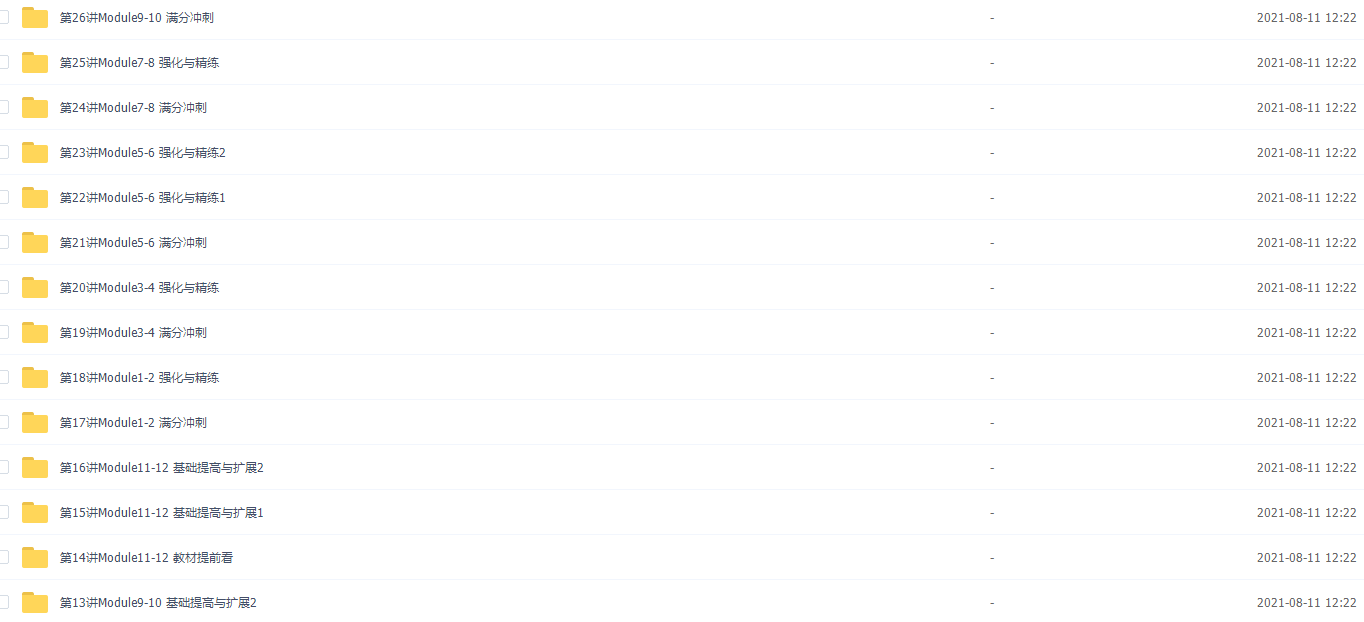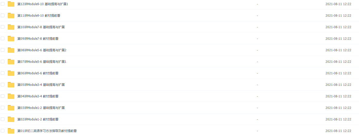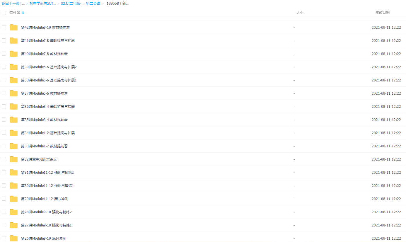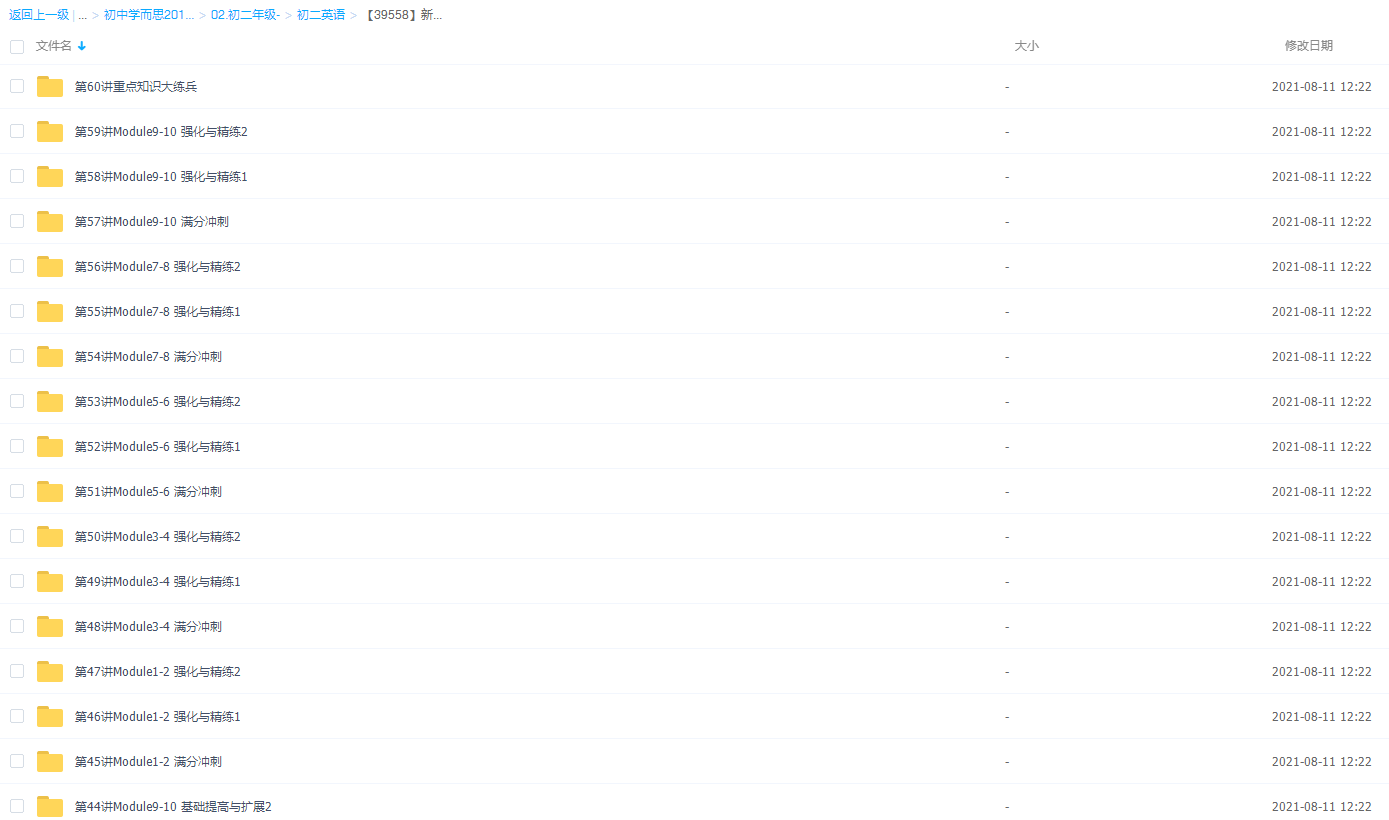 此课件来自学而思网校,【39558】新初二英语年卡尖子班(外研版) 【60讲刘飞飞】,包含视频课程和讲义资料 。此课件的主要内容包括: Module11-12 基础提高与扩展、Module1-2 强化与精练、初二下重点语法状语从句、二下课内话题词汇扩展与巩固、初二上教材难点精讲、初二下重点语法直接引语与间接引语 等等视频