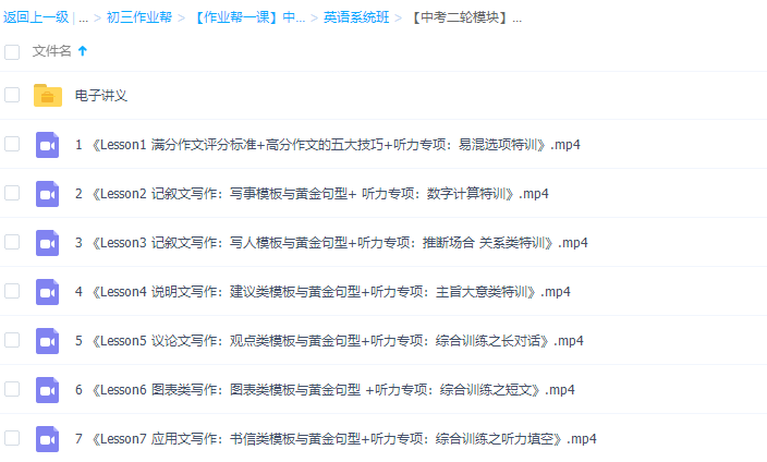 此课件来自作业帮网校,中考二轮模块听力写作满分特训班。学习英语,听力都是必不可少的环节之一。同样在英语学习方法中,写作是最难把握的一个知识点。清晨人的听觉非常灵敏,对听说的训练颇为重要,晚8点前后人的记忆力处于高峰期可以记单词。