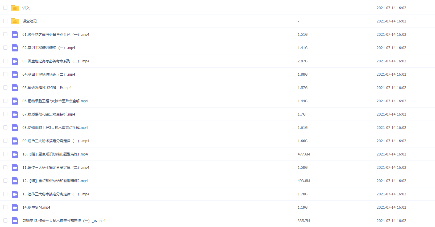 澜书院万猛高考生物课程,本课程共16.7G,VIP会员可通过百度网盘转存下载或者...