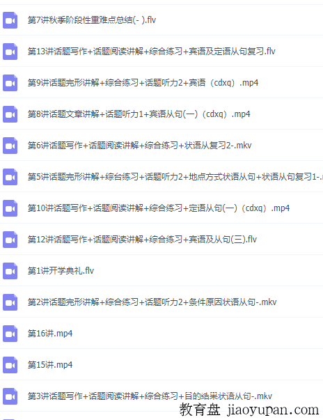 学而思吴晨晨老师英语视频课程,初中英语精英冲刺班,讲解全面资料齐全! 声明:本站资源来自会员发布以及互联网公开收集,不代表本站立场,仅限学习交流使用,请遵循相关法律法规,请在下载后24小时内删除。 如有侵权争议、不妥之处请联系本站删除处理! 请用户仔细辨认内容的真实性,避免上当受骗!