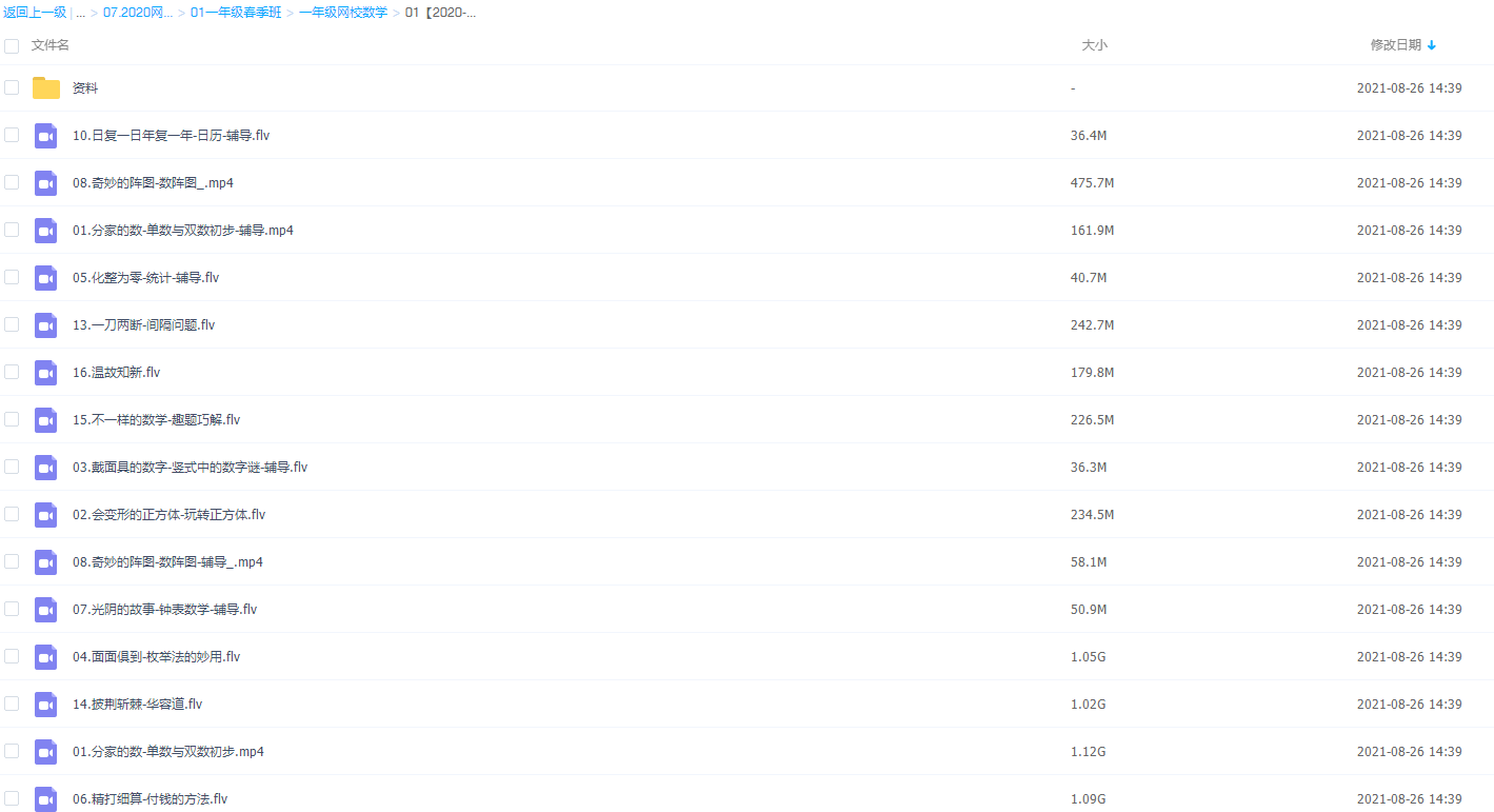 学而思-何俞霖 一年级数学2021年寒假培优勤思在线 课程目录:├──0 0| ...