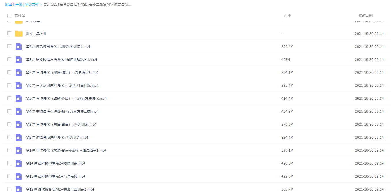 此课件来自学而思网校,昆尼高三英语 2021年春季目标130+班,包含视频课程和讲义资料。主讲老师其风格是善于从基础到深入学。此课件主要知识点包括:谓语考点进阶强化+听力训练、非谓语考点进阶强化+万幸方法回顾、三大从句进阶强化+七选五巩固训练、读后续写强化+完形巩固训练等视频。