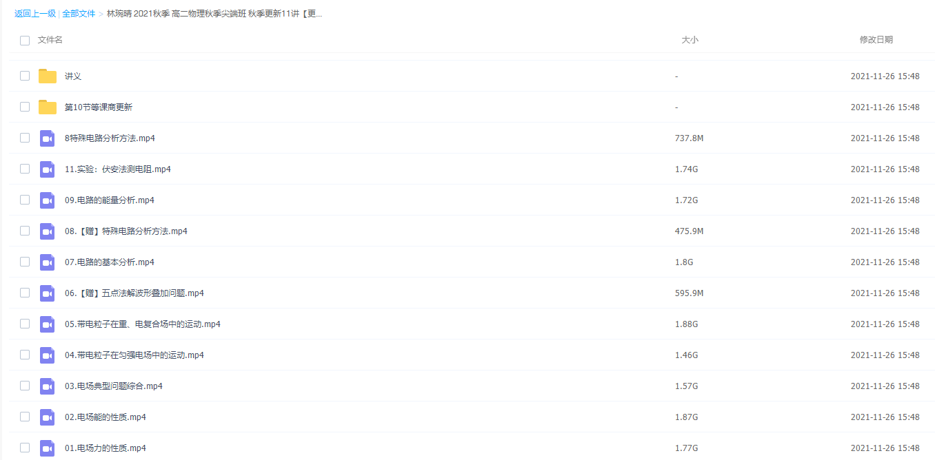 此课件来自作业帮网校,林琬晴2021秋季高二物理秋季尖端班更新11讲。主讲林琬晴老师讲课生动有趣,脱离题海讲题型,提分很快。此课件主要知识点包括:特殊电路分析方法、电路的能量分析、带电粒子在重、电复合场中的运动、带电粒子在匀强电场中的运动、电场典型问题综合、电场能的性质、电场力的性质等视频。