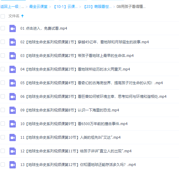 带孩子穿越到45亿年前,39亿年前、38亿年前、35亿年前……深入浅出,用形象的视频语言,一直讲述到地球发展的6000年前,为孩子们贯穿起地球发展的整个脉络,讲述地球生命的起起落落。让孩子开阔视野,培养孩子们的科学思考能力。