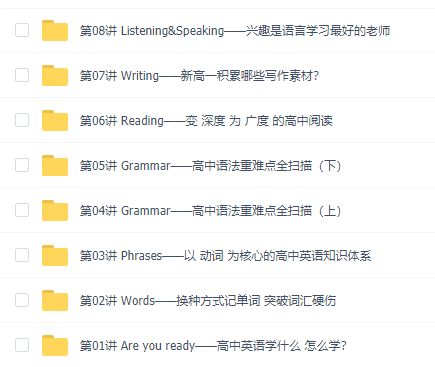 翻开高中英语语法书的目录部分,我们可以看到所有要学习的语法全部在上面。