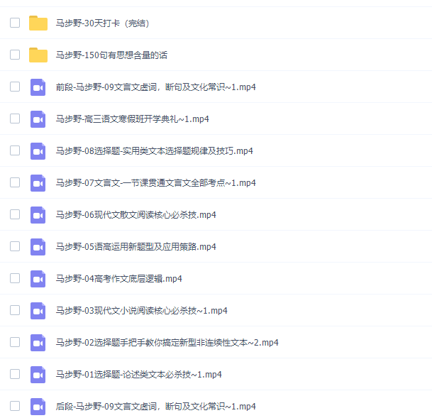 此课件来自马步野2020-2021高考语文二轮辅导全套网课资源,包含:寒春两季正课、万能公式、作文提分7中武器、150句有思想含量的话,以及高中语文各类知识点复习讲解。欢迎同学们网盘下载学习!