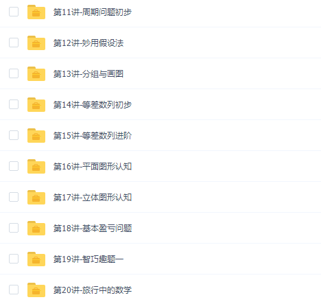 此课件来自高思网校,小学数学三年级竞赛数学同步课程上册20讲。此课件主要知识点包括:加减法巧算、基本应用题、间隔问题、简单枚举、字典排列法与树形图法、找规律、和倍问题与差倍问题等等视频课程,对启发小学生学习数学科目起到了很好的作用,并训练孩子的数学思维和思考方式。在每一讲的开始部分,都绘制了精美的漫画,知识内容在漫画故事的开展中进行讲解,图文并茂,更具亲和力,对于提高学习兴趣会有很大帮助。