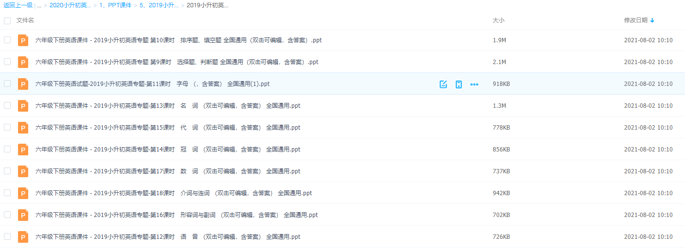 小升初的英语还是尤为重要的,2019英语专题选择题、判断题全国通用等10个文件,提前学习可能影响孩子一生的发展哦~