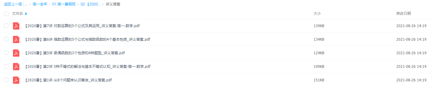 此课件来自作业帮网校,2020刘天麒暑假高一数学尖端班视频,包含视频课程和讲义资料 。主讲刘天麒老师以最大的热情,努力让自己的感染力穿透屏幕,影响更多的孩子。此课件主要知识点包括:五种不等式的解法与基本不等式认知、函数的定义巧解及函数的3要素、函数单调性的3种形式和3种用法、奇偶函数的3个性质和4种题型、指数函数的5个公式与指数函数的个基本性质、.对数运算的5个公式及其运用等视频