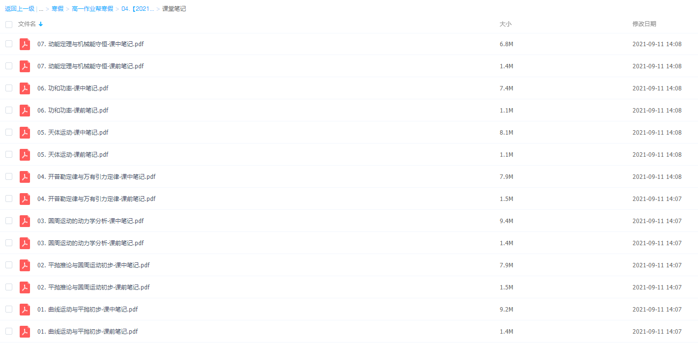 2021作业帮寒假高一物理尖端班(林婉晴)(完结)
