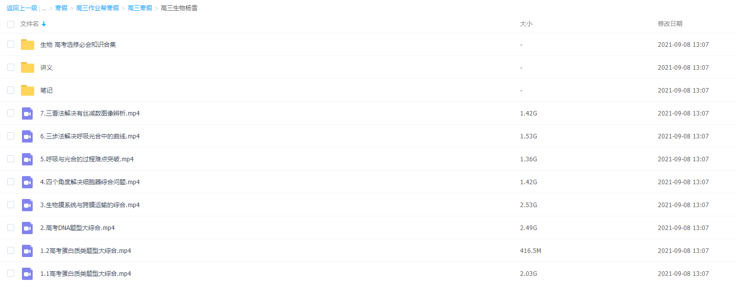对于生物学来说,同学们要思考的对象即思维元素却是陌生的细胞、组织、各种有机物和无机物以及他们之间奇特的逻辑关系。因此同学们只有在记住了这些名词、术语之后才有可能掌握生物学的逻辑规律,既所谓“先记忆,后理解”。所以,对于生物,先把基础知识记住,再慢慢去理解,效果反而更好一些。此课件来自作业网校,2021作业帮寒假高三生物杨雪完结,包括课程视频回放以及资料讲义。