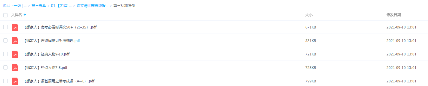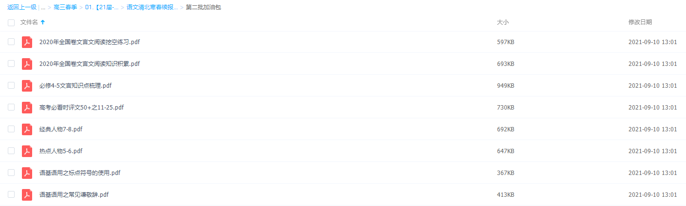 此课件来自作业帮网校,2021作业帮语文清北寒春邵娜续报加油包资料。本课件主要内容包括:2020年高考语文真题分类汇编、文言知识梳理、经典人物素材、高频古诗词背默、高考知识脑图、语基语用之常考成语、古诗词常见手法梳理、高考必看时评文、语基语用之标点符号的使用、2020年全国卷文言文阅读知识积累、2020年全国卷文言文阅读挖空练习。