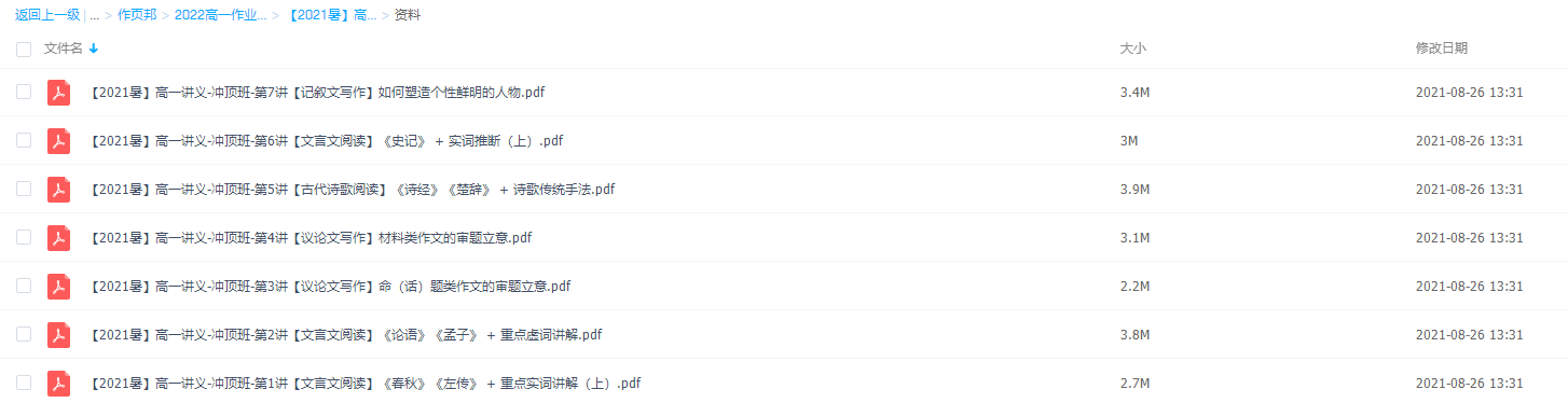 高中语文提分技巧,积累很重要。每天坚持写一段200字的豆腐块。在写的过程中会慢慢接触一些文言词汇并学会运用,培养起兴趣后还会下意识地去接触这方面的知识。此课件来自作业帮网校,高一语文暑假冲顶班(陈晨),包含视频课程和讲义资料 。