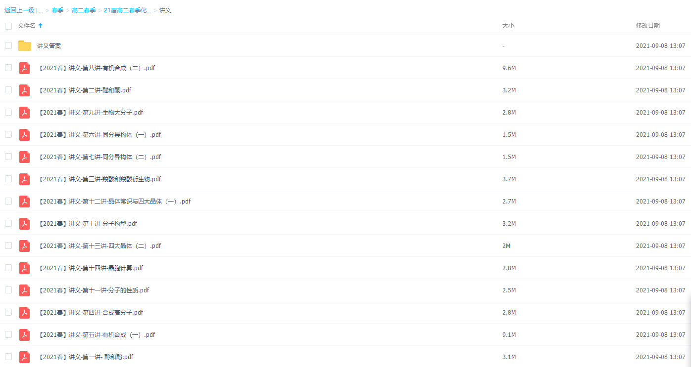 2022高三高考化学李霄君A+ 暑假班 秋季班目录:├─秋季班│ ├─李霄君【春...