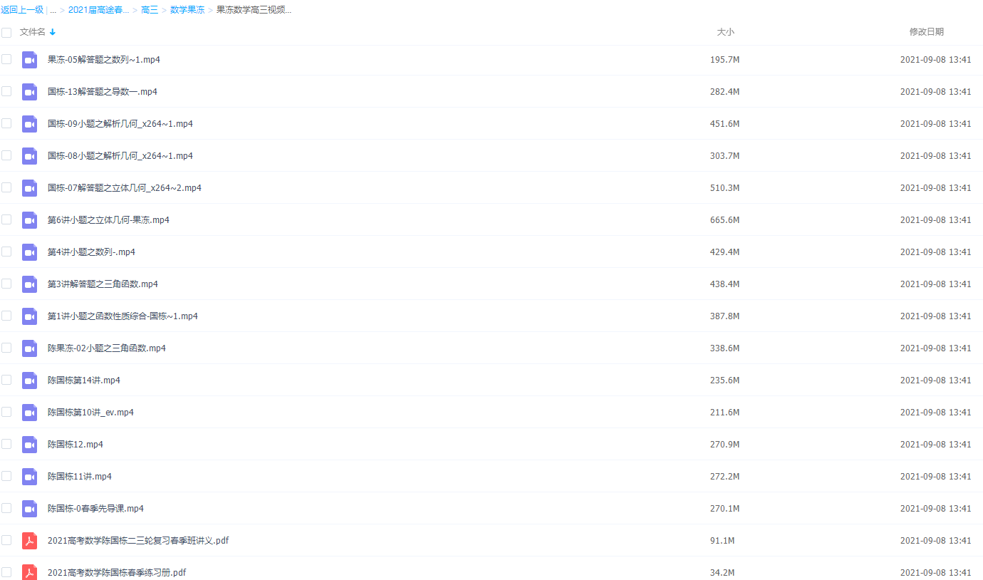 此课件来自于高途课堂,2021届高途春季班(HL绝密)-高三陈国栋果冻数学视频课程,课程知识点包括选择题三角函数、函数性质综合、立体几何、数列、解析几何和导数等视频。还有配套的讲义:2021高考数学陈国栋二三轮复习春季班讲义.pdf和2021高考数学陈国栋春季练习册.pdf。他的课程内容多以题型为主,题型梳理尤为全面,讲的题目都很经典,方法总结也很独特。知识点讲的非常的详细,易懂且全面。