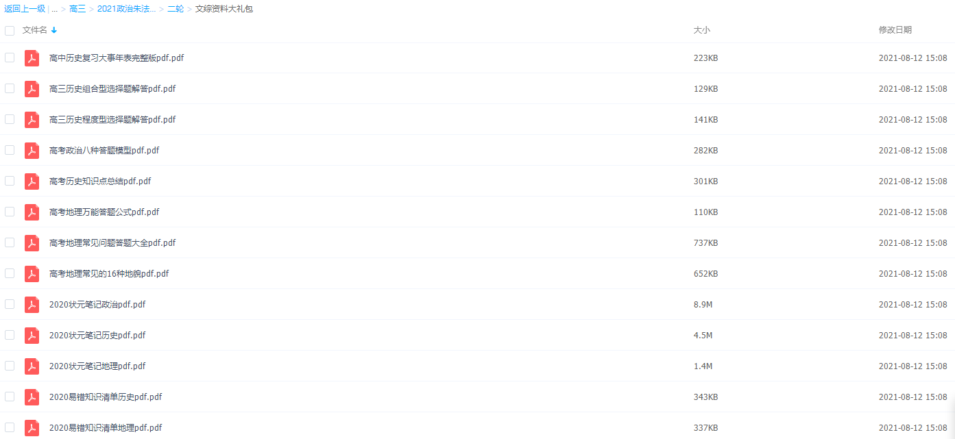 高考文综必背知识点的资料文科由历史、政治、地理三大科目组成,考好高中文综对于高考高中生来说也是至关重要的,教育盘小编整理了二轮文综资料大礼包,在临近高考之际,大家最好做一些押题卷,即使是不全押中,也能模拟高考进行限时训练,益处多多。