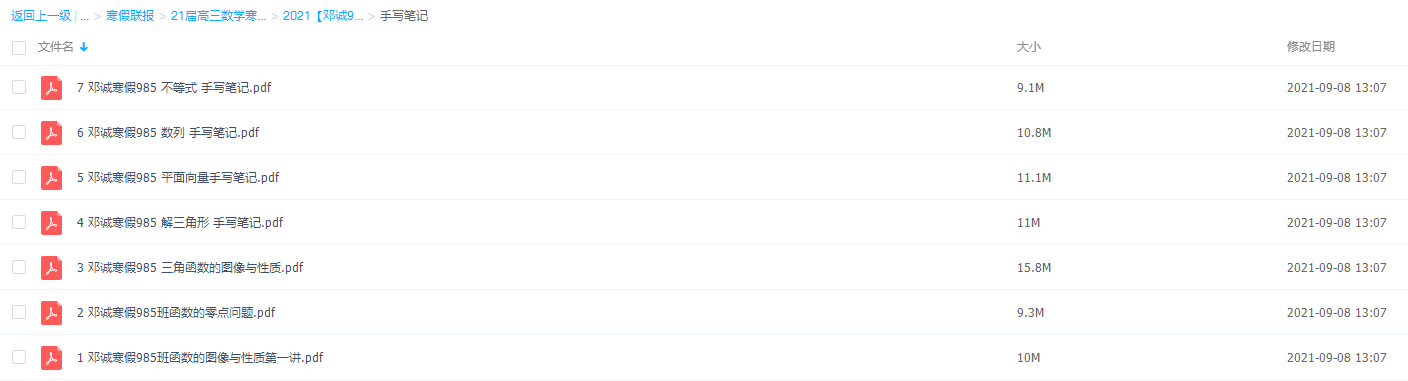 2021猿辅导邓诚数学高三目标985班寒1期课程手写笔记