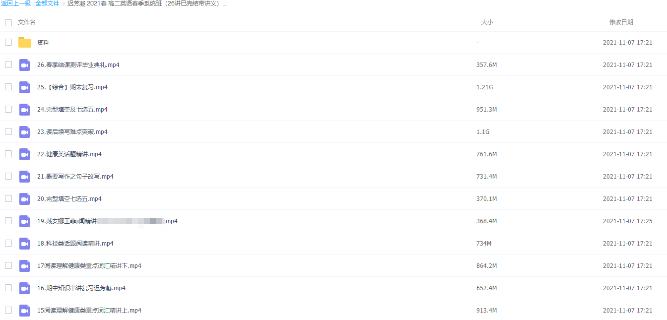 2021高中英语视频课程迟芳凝高二英语春季系统班完结